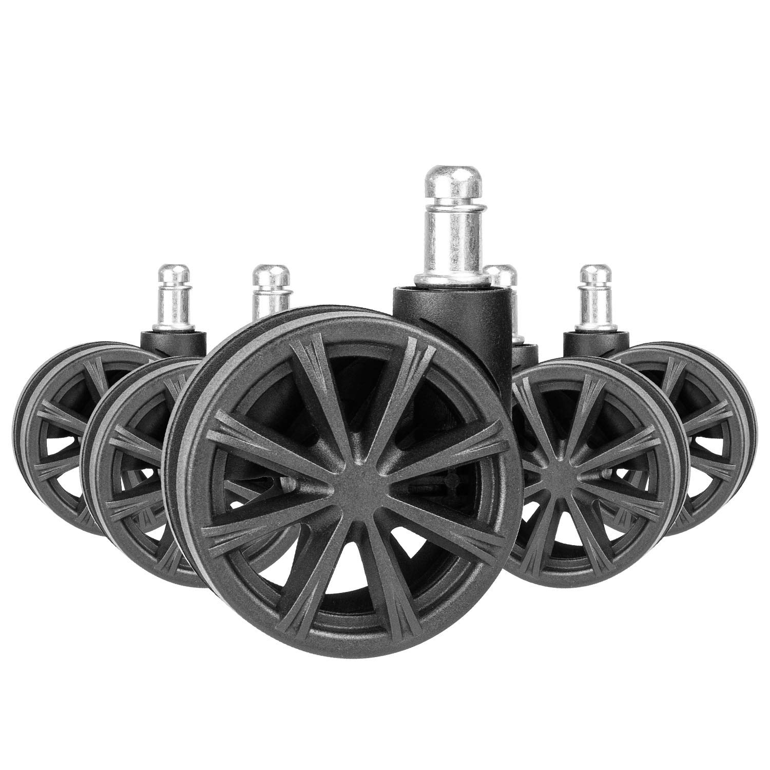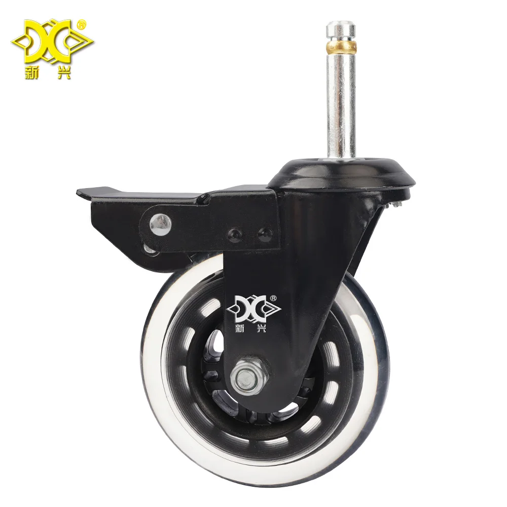 If you opt for a metal table leg, we can apply/install the threaded insert for you, so all you have to do is apply your caster when it arrives. Apply glue to the caster stem, insert the stem into the hole in the chair leg. Install the new chair wheels by pushing the caster stem all the way into the chair base socket. Remove the remaining old plastic chair wheels using the method in step 1. This process is for the standard grip ring stem type, and the last step in how to replace chair wheels.